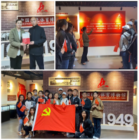 在参观过程中,师生党员通过集体学习习近平总书记关于红色基因的重要讲话重要指示,通过参观党带领军民开展各类体育活动的影像和图片资料,深切感受到革命年代的艰苦与艰难、激情与火热,深切感受到体育与革命、体育精神与国家意志的深刻关系。师生党员纷纷表示,党领导下的革命军民在艰苦环境中表现出的坚韧与坚强、乐观与自信,充分体现着中国人民与中华民族的精神和气节,作为新时代体育人,要牢记习近平总书记强调的“让红色基因、革命薪火代代传承”的要求,传承红色基因,赓续红色血脉,让红色体育精神成为革命传统教育、爱国主义教育的宝贵精神财富,成为讲好中国故事增进民族情感的时代强音,成为老员工增强文化自信的重要途径。参观结束后,中国红色体育博物馆负责人向师生赠送了《红色体育博物馆》书籍。(365英国上市官方网站 文、图/王海英 审核/丁煜成)