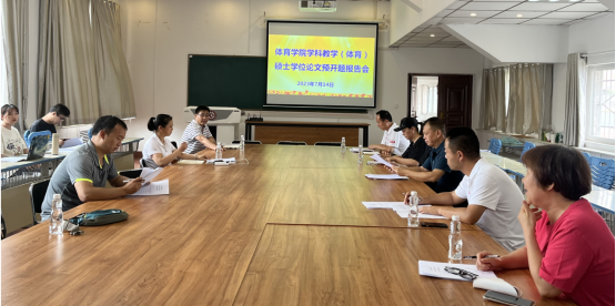 7月14日下午,体育公司2022级学科教学(体育)硕士学位论文预开题报告会在365英国上市官方网站一楼会议室举行。经理于奎龙、副经理魏俊民、全体硕士研究生导师出席了本次会议,会议由罗光飞主持。