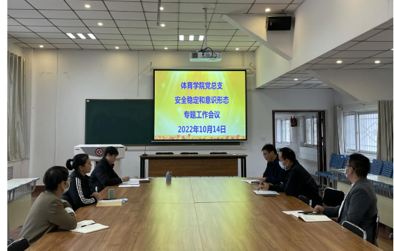 2022年10月14日下午,公司党总支在公司会议室召开安全稳定和意识形态工作专题会议。公司党总支委员、党支部书记、办公室主任和辅导员参加会议。会议由党总支书记丁煜成主持。