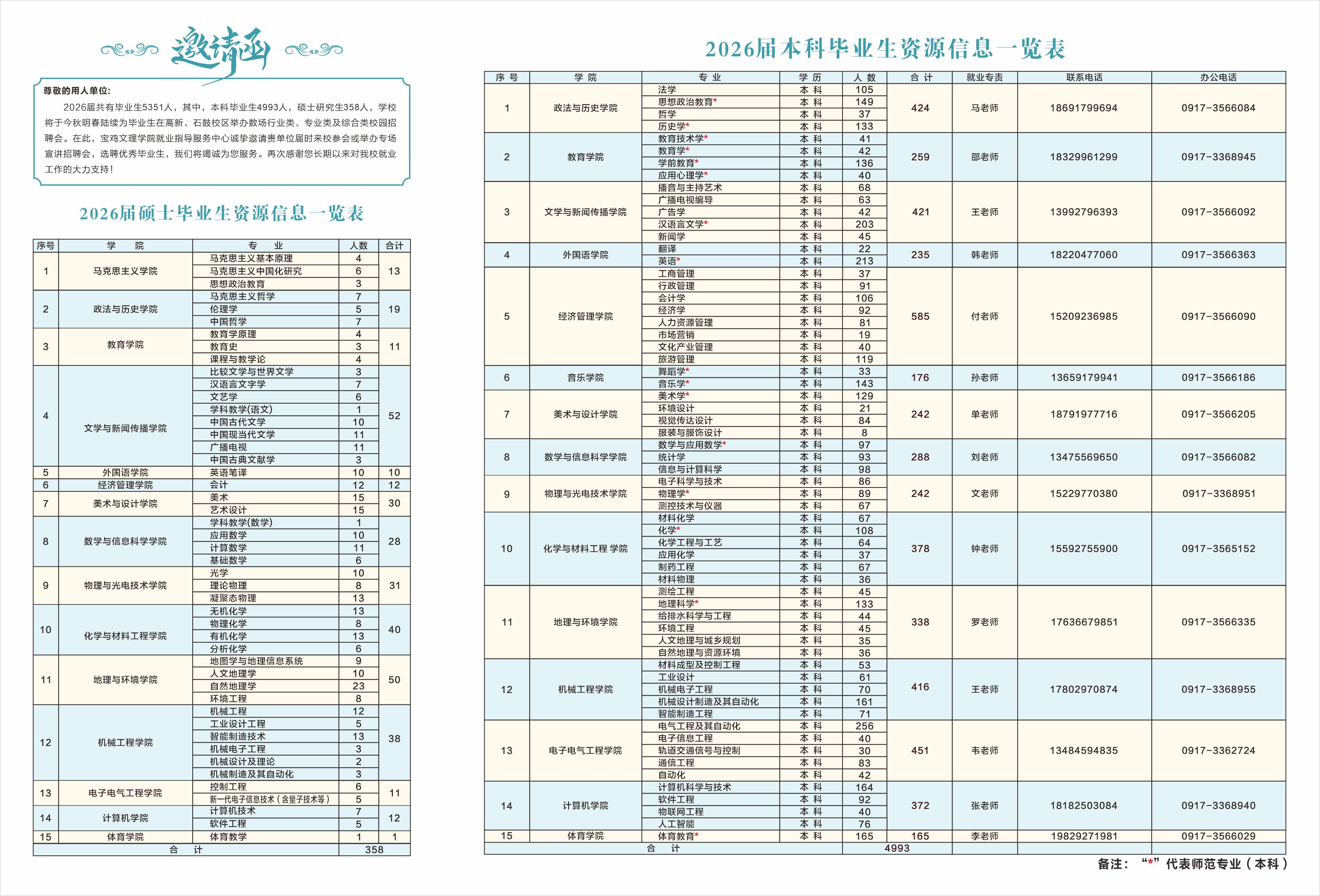 1.招聘工作联系人及电话:戴老师 王老师 0917-3364305 0917-3366239